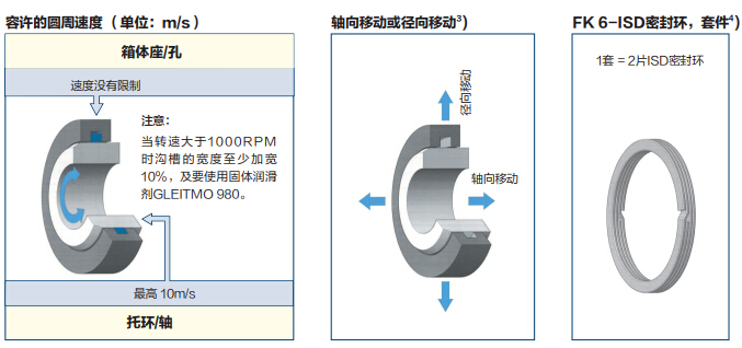由于“FK 6-ASD”或“FK 6-ASKD”容易安装,相对于“FK 6-ISD”或“FK 6-ISKD”我们优先推荐使用“FK 6-ASD”或“FK 6-ASKD”。根据技术应用的要求,密封托环的材料可以采用钢材、铸铁、轻合金或塑料。